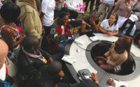 Talkaoke is a live audience controlled, open microphone talk show. From “the UFO of chat” (the Talkaoke table) a talk show host runs a dynamic conversation among ordinary people. Everything is recorded and streamed live on a screen at the setting and on the Internet. The conversation is illustrated with speech bubbles, comments and images from the Internet.